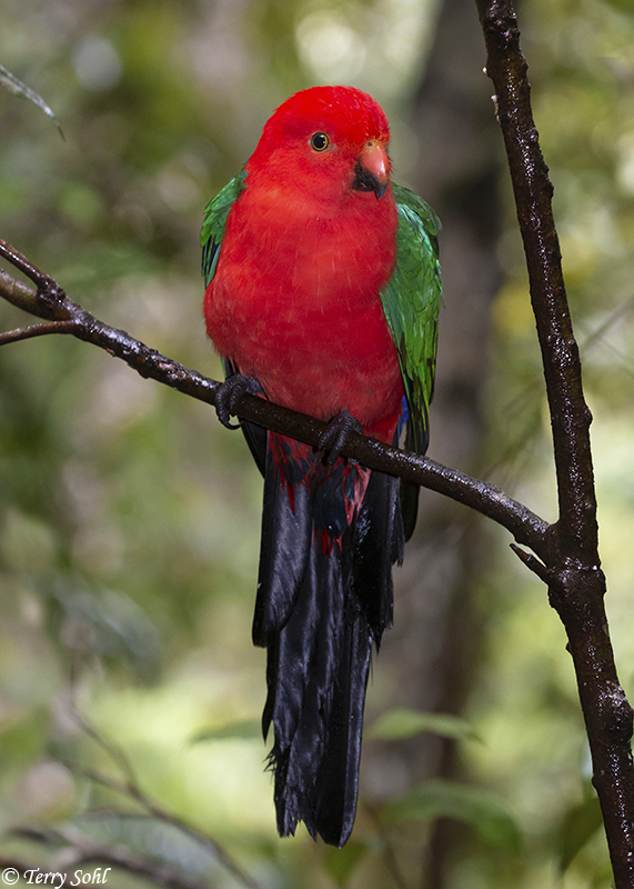 We saw Australian King Parrots when we stayed at the Promised Land Retreat near Bellingen. Every morning they'd fly in and feed in several of the landscaping trees around the main residence. However, they were VERY shy, and didn't ever let me get all that close. I wondered if I'd lost my chance to photograph the species, but I shouldn't have worried!