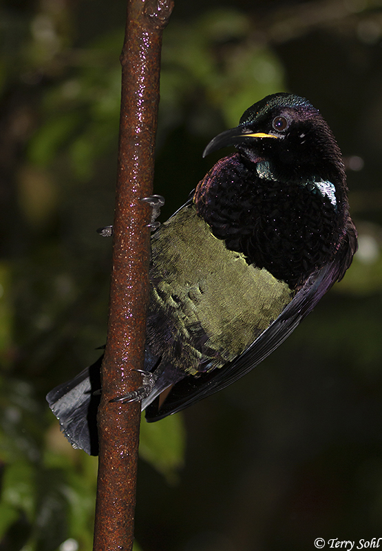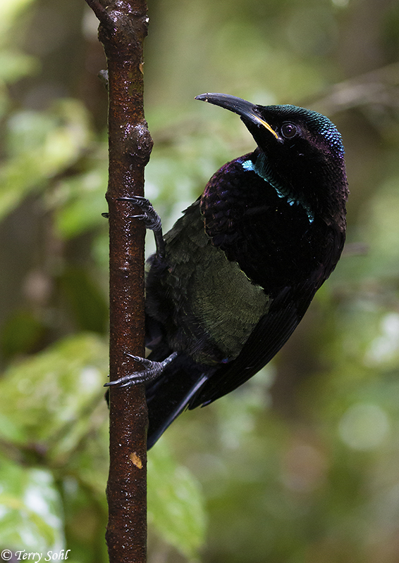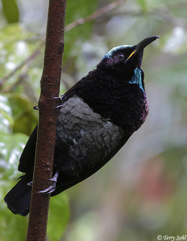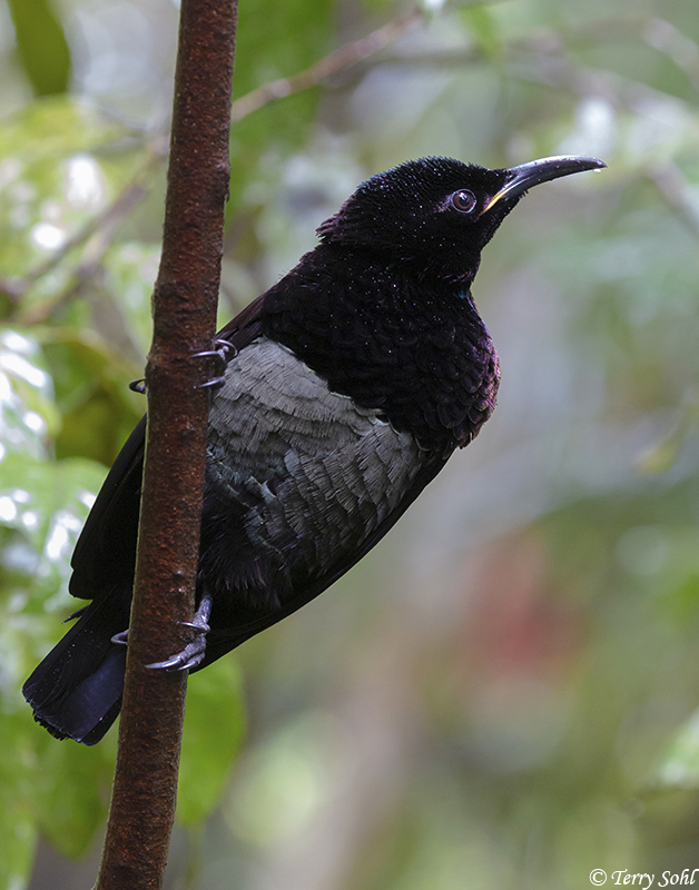 A gorgeous species, with obviously huge plumage differences between males and females. It was also very interesting to see just how the light impacted the look of the plumage. It was very dark under the rainforest canopy, so there were many times I had to use some flash to be able to get any photograph at all. The plumage really lights up when you add a touch of fill-flash, as seen in many of the photos below. Gorgeous bird, and so glad I got the opportunity to see them!