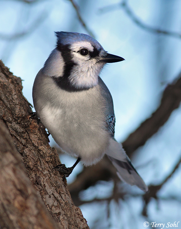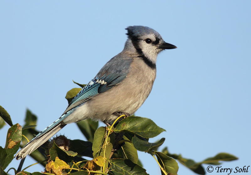 | ID Keys: Crest, blue upperparts, white underparts, black "necklace", white wing-bars and tail edging | ||