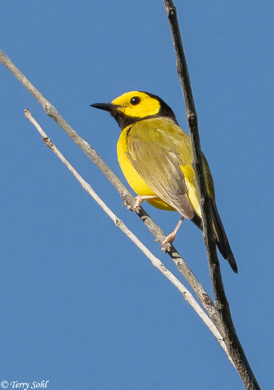 ID Keys: (Male): Black hood around yellow face, bright yellow underparts,