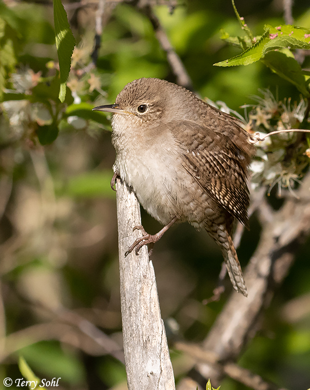 | ID Keys: Plain wren with faint eyebrow and eye-ring, brown overall, black barring on wings and tail | ||