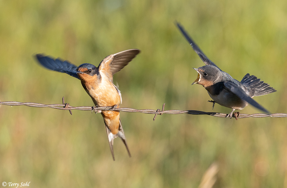 My Favorite: A very common sight from late spring through early fall, Barn Swallows are often seen flying around in search of insects, or just hanging out on barbed wire fences and other perches. My favorite photo is the one below, where I'm getting a little bit of attitude from one on a barbed wire fence. From May 2019 in Lincoln County, South Dakota.
