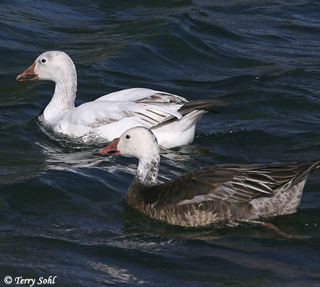 dark phase Snow Goose are shown above, while a white-phase Ross's Goose is