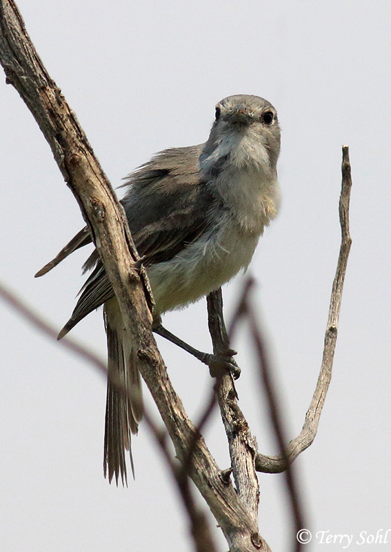 | ID Keys: Gray overall, white eye ring, underparts lighter, pale lores, very weak wingbar | ||