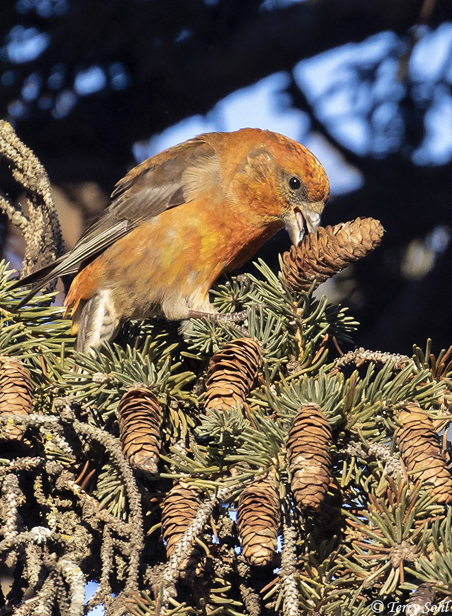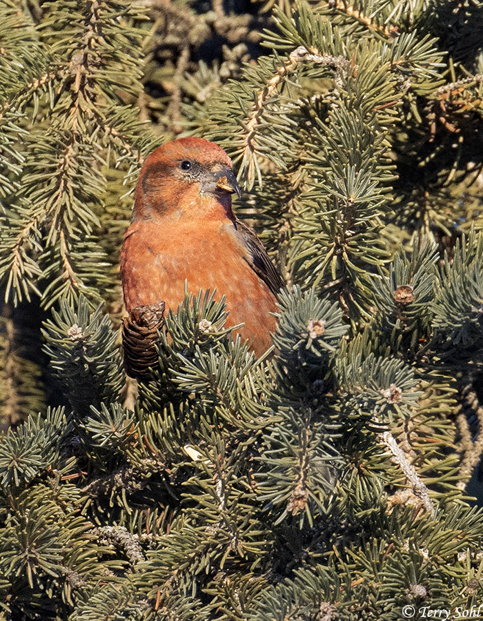 Red Crossbill is primarily a denizen of conifer forests due to its strong