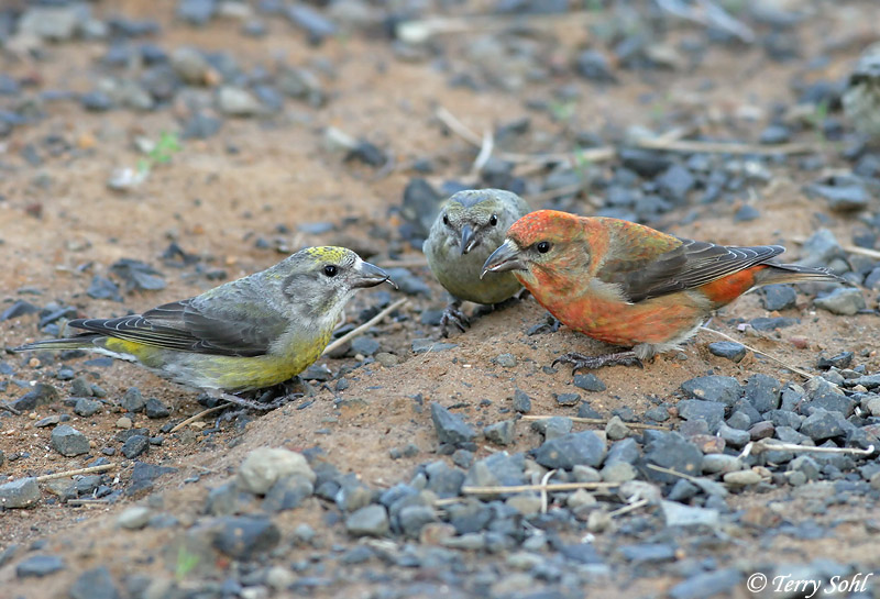 | ID Keys: Crossed bill, males red and females dull yellow, both with darker wings | ||